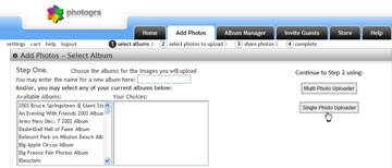 To add photos to any album please go to “add photos” select or create an album and click on the “single photo uploader”.