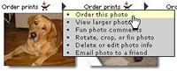 | To purchase different products for your photos please go “Home” select the album you desire and place your mouse on the black arrow and select “Order This Photo”.